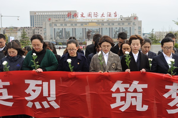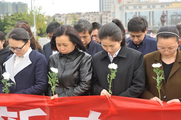 圖為集團員工們向革命烈士默哀三分鐘,表達(dá)對革命先烈的緬懷和敬仰之意。