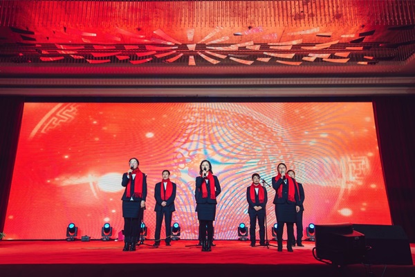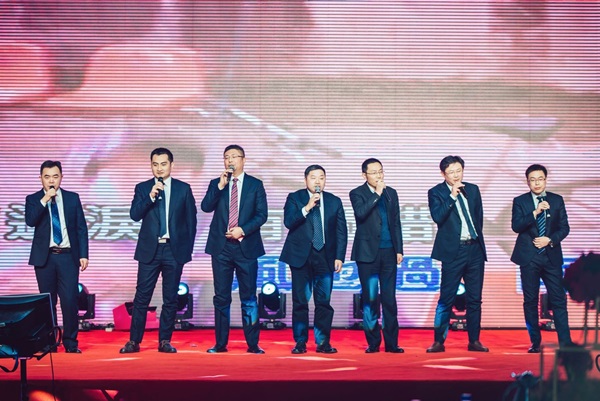 就在大家認為節目單上的16個節目已表演結束的時候,驚喜悄然出現:“朋友一生一起走,那些日子不再有,一句話、一輩子、一生情、一杯酒……”集團7位領導聯袂演唱周華健的經典名曲《朋友》,再次激發在場200多人的共鳴,一起加入合唱,將晚會氣氛推向最高潮。