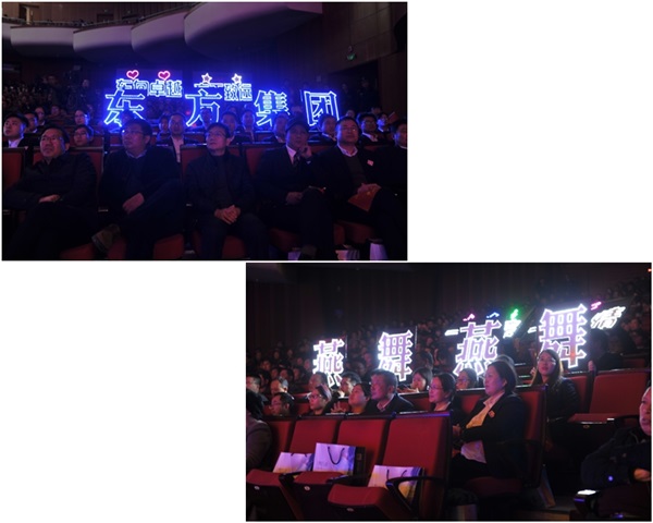 在張振國接受采訪環節,由100名集團員工組成的燕舞方陣,著集團統一服裝、佩戴 “燕舞”LOGO、高舉“東方集團,東向卓越·方正致遠”和“燕舞燕舞,一曲歌來一片情”字樣的燈牌粲然出彩,與臺上訪談形成極佳互動,造濃了會場氣氛。