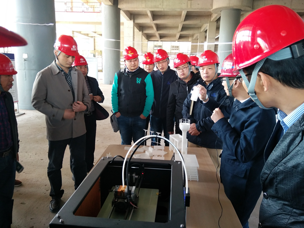 在中鐵建設集團華東分公司BIM小組負責人的帶領下,觀摩人員先后參觀了安全VR體驗館和BIM展示區。在展示區,BIM小組人員分別向大家介紹了3D打印技術、BIM+VR技術、無人機現場攝像技術在該項目中的實際應用。觀摩人員在學習中用心聆聽、積極思考,與BIM小組人員進行了深入溝通和詳細交流。當了解到通過運用BIM技術,該項目在設計階段即提前解決機電問題42個、土建問題49個;該技術實現的三維可視化技術交底使項目材料利用率達到98%、廢料產生率大幅降低;精確快捷的計算促進工程建設進度和質量安全得到了最優管理時,紛紛嘖嘖稱贊。