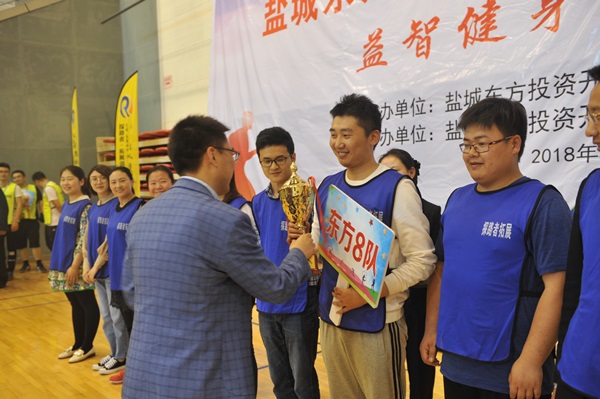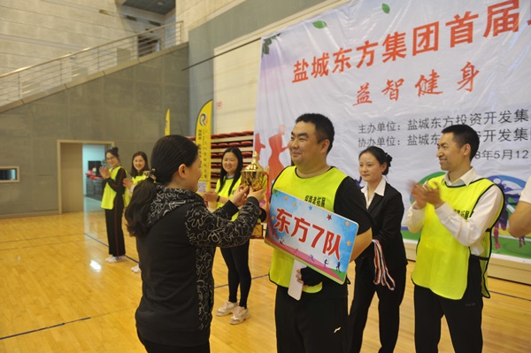 經過一個下午的比賽,選手們發揮了運動技巧,賽場上妙趣橫生,不斷掀起比賽熱潮,吶喊助威聲浪不斷,平日工作嚴謹認真的員工們活力充沛,熱情澎湃。經過團結、緊張、熱烈、有趣的激烈角逐,決出了冠亞季軍三個團隊獎項。東方4隊、東方8隊、東方7隊分獲團體總分一、二、三名。集團副總經理吳將、集團黨委委員華小軍、集團人力資源管理部部長唐曉麗分別為獲獎團體冠亞季軍頒發了獎杯及獎牌。