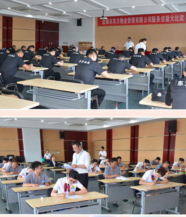 為了展示一線員工專業技能水平、專業知識和精神風貌,通過互相觀摩,激發員工苦練內功、服務用戶的熱情,在公司形成“比、學、趕、超”的工作氛圍,鹽城市東方物業管理有限公司于6月25日、26日在東方科技城舉辦了2018年度服務技能大比武活動,來自各工種的100多位選手參加了比賽。此次比賽本著實用原則,通過筆試和實操環節,按物業服務的四個板塊設置比賽項目。