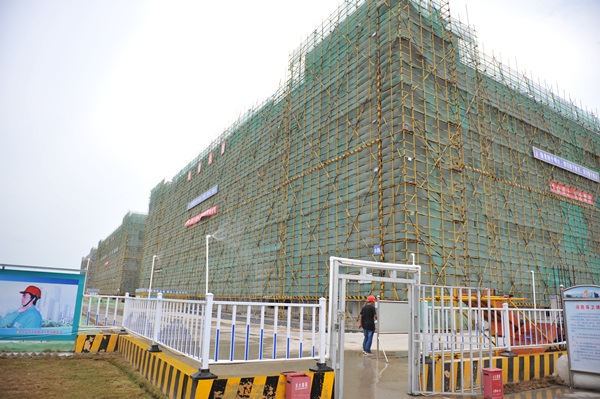 悅欣花園現場,只見項目部大門口樹立著一臺揚塵監控顯示屏,當揚塵監測系統濃度達到警戒值,樓層上的噴淋設備自動噴射出了細密的水霧,施工現場揚塵得到有效控制。同時,該項目的塔吊防碰撞、人貨電梯監測等在線安全監測系統應用、安全通道人臉識別系統、VR安全教育體驗館等安全創新措施令大家的交口稱贊。