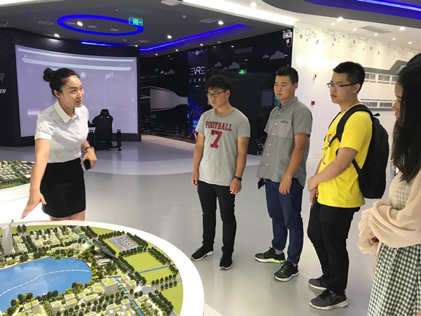 圖為未來科技城項目部負責人向新員工介紹項目基本情況