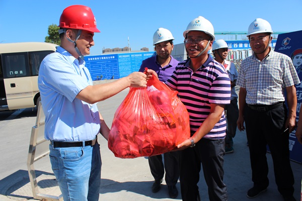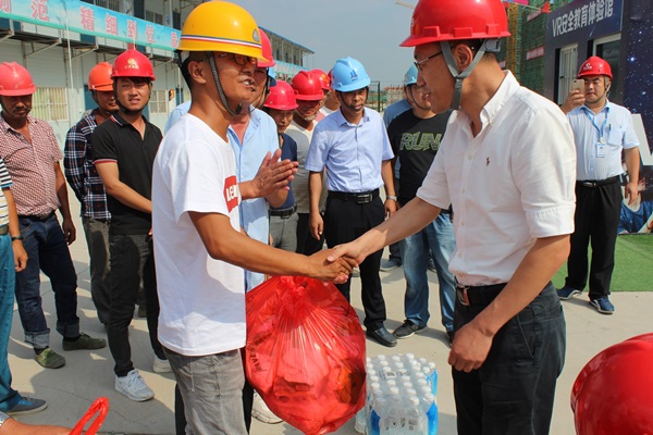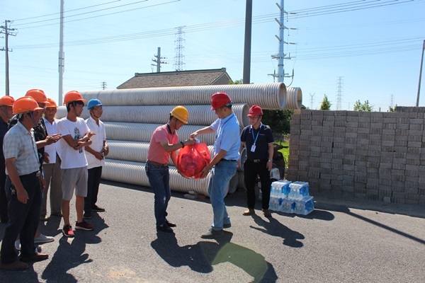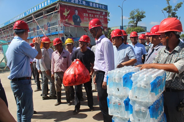 當前已進入夏季高溫季節,也是現場施工安全事故多發的季節。“同志們辛苦了,切記保重身體,注意施工安全!”,每到一處,集團領導與現場工人一一握手,感謝大家在高溫下的辛勤作業,為項目建設作出的貢獻。向他們送上飲料、毛巾、清涼油和藿香正氣水等防暑降溫用品,并向項目負責人詳細詢問了項目工程施工進度、質量和安全情況,再三叮囑要結合項目實際情況,更要科學、合理地安排好作息時間,應對高溫天氣,保證身體健康,消除各類安全隱患,確保各項工作秩序井然、有條不紊。