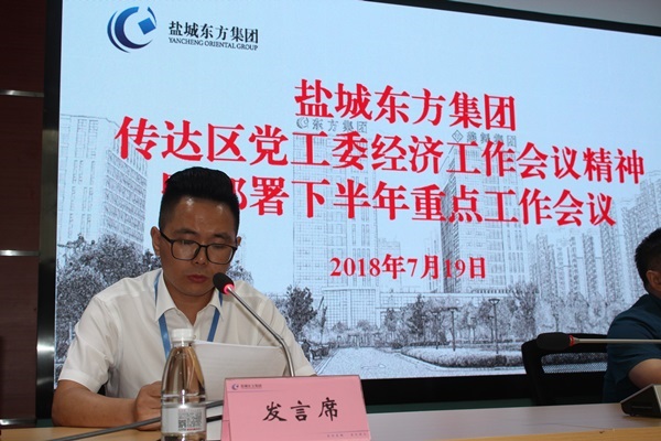 7月19日下午三點(diǎn),鹽城東方集團(tuán)召開貫徹落實(shí)鹽城經(jīng)濟(jì)技術(shù)開發(fā)區(qū)黨工委經(jīng)濟(jì)工作會(huì)議精神會(huì)議。會(huì)上,集團(tuán)董事長張振國傳達(dá)會(huì)議精神,總結(jié)上半年工作并部署下半年重點(diǎn)工作。并將區(qū)黨工委經(jīng)濟(jì)會(huì)議交辦的工作任務(wù)進(jìn)行細(xì)化分解,嚴(yán)格落實(shí)各層各級工作責(zé)任,按照項(xiàng)目化思路高效推進(jìn),確保全面完成年度各項(xiàng)重點(diǎn)目標(biāo)任務(wù)。會(huì)議由集團(tuán)總經(jīng)理王旭東主持,集團(tuán)領(lǐng)導(dǎo)班子、集團(tuán)各部門、子公司中層以上約100人參會(huì)。集團(tuán)工程管理部、投資發(fā)展部、資產(chǎn)管理部管理人員在會(huì)上作表態(tài)發(fā)言。