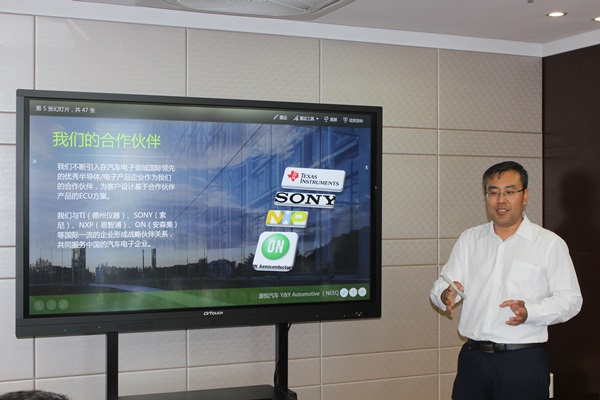 圖為上海源悅汽車電子股份有限公司董事長傅國介紹公司基本情況