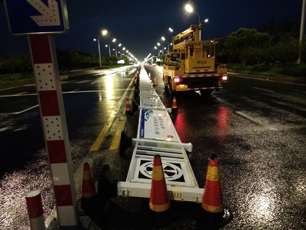 安通公司為保證開發區道路通暢,加班修復因強風暴雨而造成的護欄倒伏、爆閃燈損壞等情況。22日下午修復了五臺山路、希望大道等路段的護欄。當天晚上所有員工加班加點值班巡查,一有發現損壞,及時修復。所有員工奮戰到次日凌晨,截至目前,仍繼續巡查開發區所有路段。