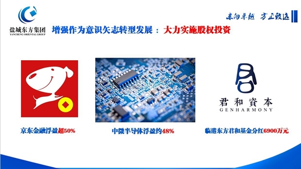 面對曾經(jīng)取得的成績、贏得的贊譽,張振國坦言,集團上下并沒有沾沾自喜,而是把目光放得更遠、思維拓得更寬、腳步邁的更加穩(wěn)健,始終把招商引資、股權(quán)投資作為集團解放思想促轉(zhuǎn)型的重要強力引擎,在今年上半年已簽約7個招商引資項目、3個項目近期上會評審,實施市場化投資項目5個、投資金額達6.8億元;股權(quán)投資收益突出,京東金融浮盈超過50%、中微半導(dǎo)體項目浮盈約為48%、上海臨港東方君和基金分紅6900萬元,在轉(zhuǎn)型發(fā)展上再創(chuàng)新業(yè)績。