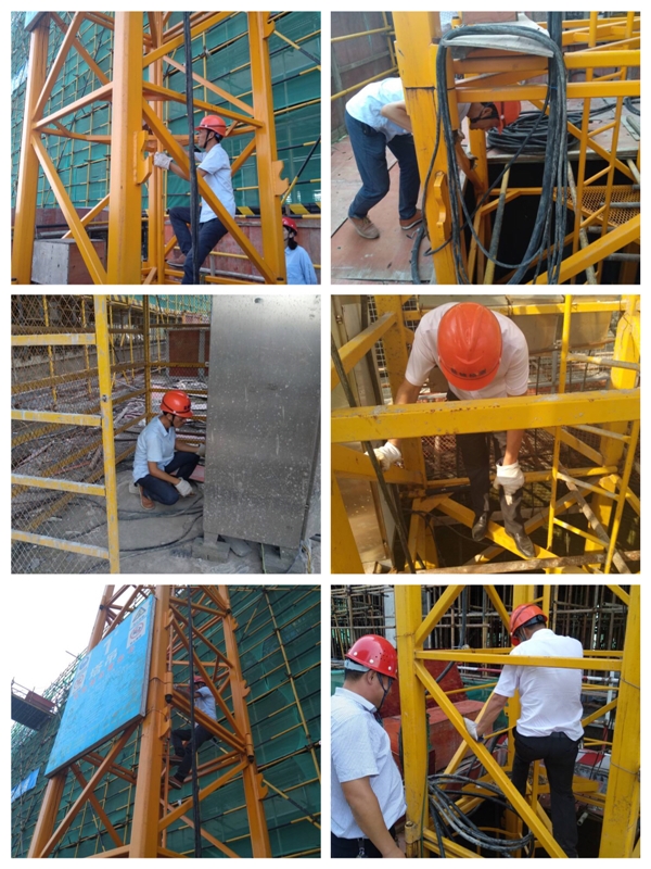 ▲圖為鹽城市工程建設質量檢測中心專家對東方集團各工程進行塔吊專項檢查