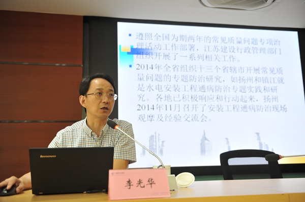 在建筑工程中,質(zhì)量通病的發(fā)生會引起人們對工程質(zhì)量問題的投訴,成為社會的熱點話題。李站長首先為大家介紹了《江蘇省住宅工程質(zhì)量通病控制標(biāo)準(zhǔn)(DGJ32/J16-2014)》實施的背景、意義及標(biāo)準(zhǔn)組成部分。隨后從地基基礎(chǔ)、地下防水、混凝土結(jié)構(gòu)、屋面工程等方面詳細(xì)講解質(zhì)量通病及防治措施,同時向大家列舉親身經(jīng)歷的相關(guān)工程設(shè)計、原材料、施工過程中所出現(xiàn)的各類問題和現(xiàn)象,條理清晰、面面俱到,闡述過程通順流暢。李站長嚴(yán)謹(jǐn)治學(xué)的授課方式也給大家留下了深刻的印象。