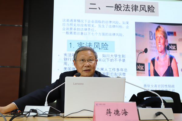 培訓(xùn)講座上,蔣教授為員工深度剖析了一般法律風(fēng)險和特殊法律風(fēng)險兩大種類,并就如何防范企業(yè)法律風(fēng)險提出若干對策和建議,輔以實(shí)際案例,深入淺出,清晰實(shí)用。