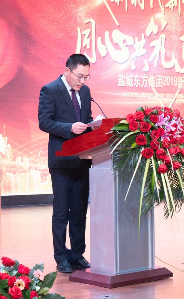 鹽城東方集團黨委書記、董事長張振國發表新年致辭。他代表集團黨委向出席今天聯歡會的全體員工、先進個人的家屬們表示熱烈的歡迎并致以新春的問候。在講話中,他全面總結回顧了2018年以來集團各項事業取得的喜人成績,展望2019,希望東方集團全體員工在新的一年里和衷共濟,逐夢前行,立足高起點實干苦干,謀求高質量攻堅克難,奮力實現“接軌上海走在鹽城大市區前列、轉型升級走在蘇中蘇北國家級經開區國有企業前列”高質量發展目標。