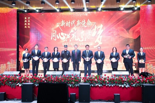 此次聯歡會分為年度相關工作表彰和文藝節目演出兩部分。東方集團黨委副書記、副董事長、總經理王旭東宣讀2018年表彰決定。集團領導為“金點子”征集、企業理念征集、2018年度先進獲獎集體及個人頒獎。