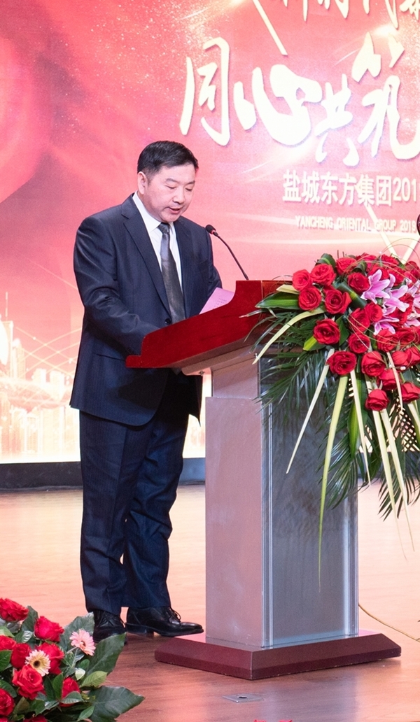 鹽城東方集團黨委書記、董事長張振國發表新年致辭。