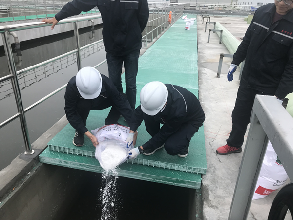 技術人員向5#AAO西池投放葡萄糖