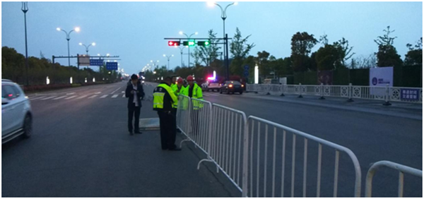 4月20日,根據馬拉松線路安排,東方安通公司對鹽瀆路(希望大道-韓資園),五臺山路(鹽瀆路-世紀大道),世紀大道(希望大道-五臺山路),希望大道(世紀大道-鹽瀆路)等25個交叉口封閉,進行賽道隔離。用鐵馬及硬質護欄封閉19個廠區及功能性缺口,并用拒馬封閉工廠門口。據統計,當日共安裝硬質護欄約2000米,鐵馬約7800米,移動拒馬30節,移動護欄100節,投放活動告示牌34塊。