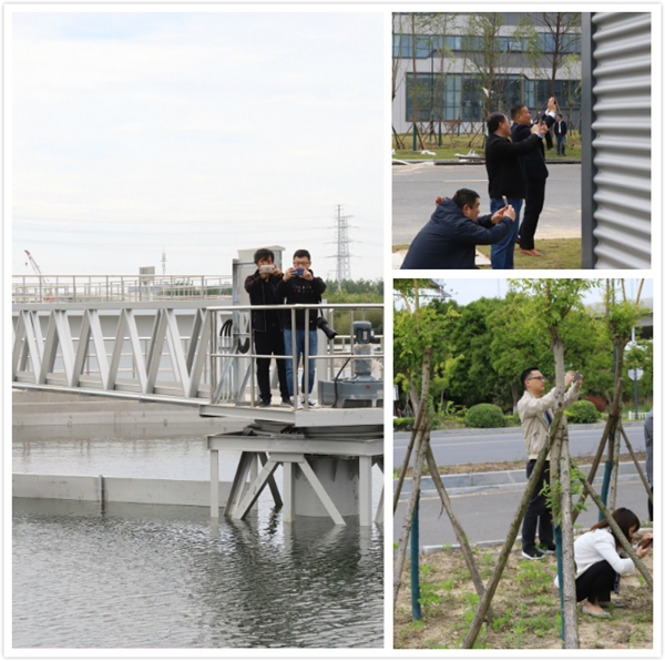 在采風(fēng)創(chuàng)作過(guò)程中,沙龍成員們相繼前往悅欣花園、東方機(jī)械電子廠房、污水處理廠和“一片林”等集團(tuán)項(xiàng)目現(xiàn)場(chǎng),拍攝不同的春光美景。采風(fēng)期間,老師從拍攝方法、選景角度等方面進(jìn)行了現(xiàn)場(chǎng)指導(dǎo)和示范。員工們或佇立、或半蹲、或側(cè)坐、或趴下……抬起相機(jī)或手機(jī)尋找最佳角度、變換最好焦段、力求最美構(gòu)圖、苦思最新創(chuàng)意,互相交流拍攝心得,不時(shí)向老師取經(jīng),積極向?qū)I(yè)攝影靠近。最終定格每一個(gè)精彩畫(huà)面,記錄下經(jīng)開(kāi)區(qū)一個(gè)個(gè)美麗的瞬間。