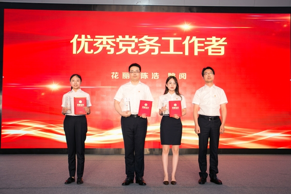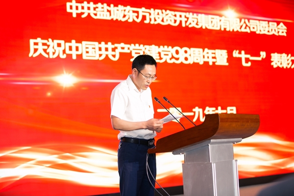 表彰頒獎環節由集團副總經理吳將主持,集團黨委副書記、副董事長、總經理王旭東宣讀2019年度鹽城東方集團優秀共產黨員、優秀黨務工作者、共產黨員示范崗、先進基層黨組織名單,集團領導班子分別為獲獎個人、黨支部頒獎。