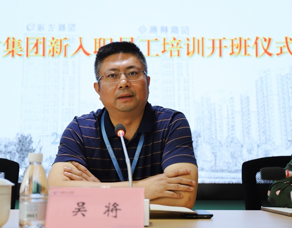 開班儀式上,東方集團副總經理吳將對新員工的到來表示了熱烈的歡迎,并向大家介紹了公司概況、業務范圍、發展歷程、企業文化等,讓大家感受公司的歷史傳承、文化底蘊。并鼓勵新員工快速融入企業,進入角色,發揮自身才華,在新崗位有新發展。寄語新員工們在今后的工作道路上不忘初心,牢記使命,勇于擔當,不斷加強自身修養,求真務實,勤思苦練,企業發展進程中不斷成長進步,實現自身更大的價值。