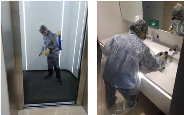 從疫情初期開始,保利綠地廣場項(xiàng)目管理處每天對公共區(qū)域進(jìn)行消毒,竭盡全力隔絕病毒傳播:每日對公區(qū)做到2小時(shí)一消毒,尤其對頻繁接觸的“高危場所”電梯間按鈕、前臺、衛(wèi)生間等細(xì)節(jié)進(jìn)行專項(xiàng)特殊消毒。針對一次性口罩等醫(yī)用垃圾處理,設(shè)置了“廢棄口罩專用”垃圾桶,統(tǒng)一進(jìn)行集中消毒,避免交叉?zhèn)魅荆惶峁┛爝f收寄消毒服務(wù),減少病毒入樓風(fēng)險(xiǎn),不給病菌有可趁之機(jī)。