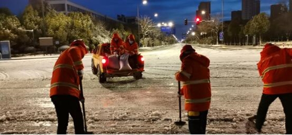 2月15日,鹽城暴雪突襲,為確保降雪天氣條件下道路安全、暢通,東方安通公司積極迅速響應,積極配合交警五大隊交辦的工作,最大限度減少和降低由于降雪原因帶來的交通事故,履職盡責做好道路設施保障工作,保障人民群眾的出行安全。