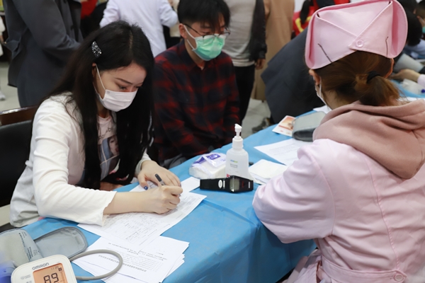 上午9點半,在陽光世紀園東門道德大講堂內,長長的獻血隊伍中,有黨員干部、團員青年和職工群眾,有第一次獻血的“新人”,也有連續多年獻血的志愿者。在工作人員的引導下有序填寫登記表、體檢、化驗、采血……