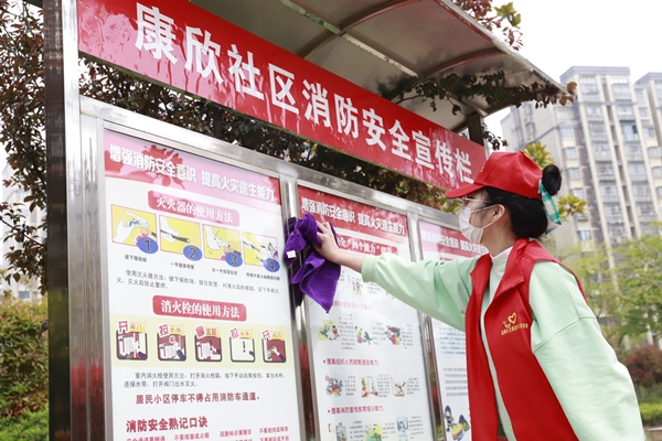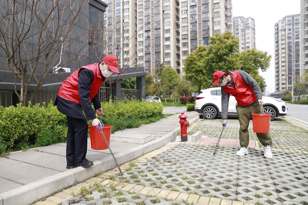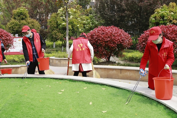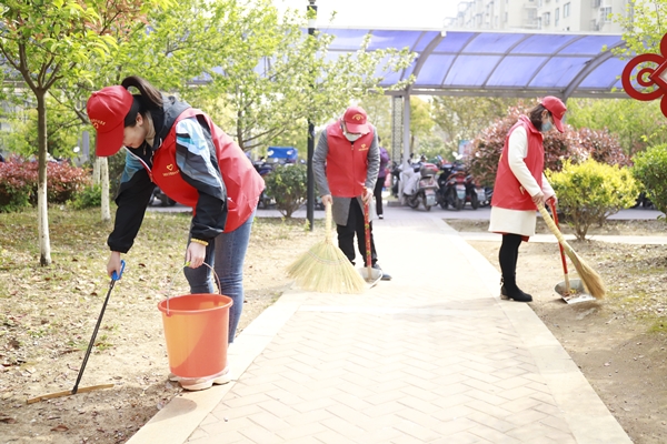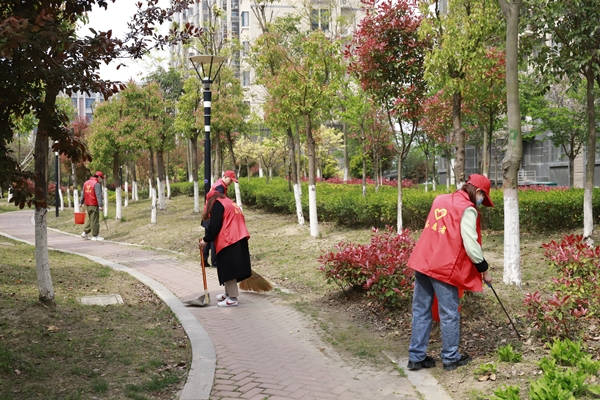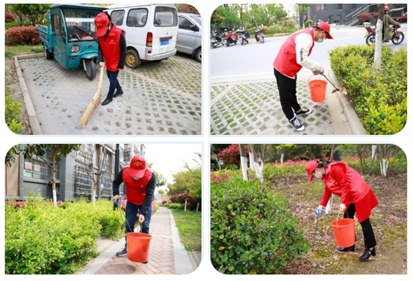 活動中,志愿者們奮力爭先,流汗出力。有的拿著掃把清掃散落的樹葉,有的用鉗子清除綠化帶里的煙頭、紙屑、塑料袋垃圾、枯枝爛葉、雜草等,有的將電瓶車按序排放,有的擦拭社區宣傳欄。經過2個小時的全面清掃后,徹底消除了衛生死角、小區路面干凈整潔,營造了良好的氛圍,進一步增強了社區居民文明意識、衛生意識、環境意識。