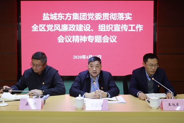 4月27日,鹽城東方集團黨委召開了貫徹落實全區(qū)黨風廉政建設、組織宣傳工作會議精神專題會議。
