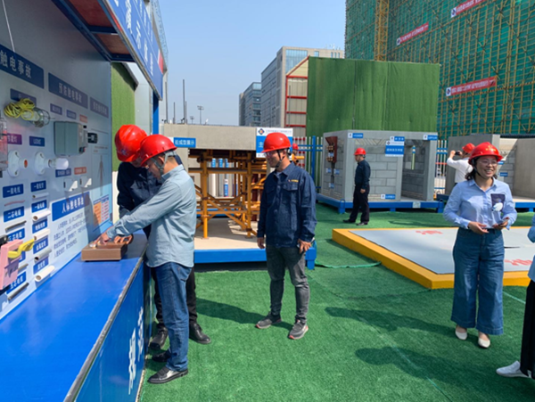 觀摩過程中,大家參觀了悅達城市廣場施工現場標準化施工樣板區、在建項目實體工程和安全標準化工地成果展示區,對悅達城市廣場項目概括進行詳細了解,并就基礎施工、主體結構施工工藝、做法及過程管控措施與項目參建單位管理人員進行了現場探討。觀摩組人員與悅達城市廣場項目組管理人員就質量管理、現場管控、新技術應用、智慧系統亮點等管理亮點等內容進行了廣泛的交流。