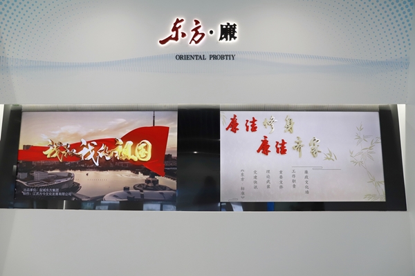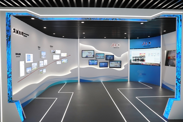 令人眼前一亮的是文化建設功能區,共分為“紅、智、廉、諧、賢”等五個板塊,每個板塊都采用視頻展示的方式,系統化、集成化推出集團高質量轉型發展的建設成果。“紅”即代表發展成就、“智”即代表轉型之路、“廉”即代表黨建和廉政建設、“諧”即代表企業文化建設、“賢”即代表東方標兵。