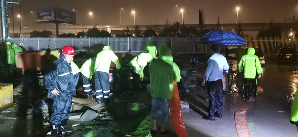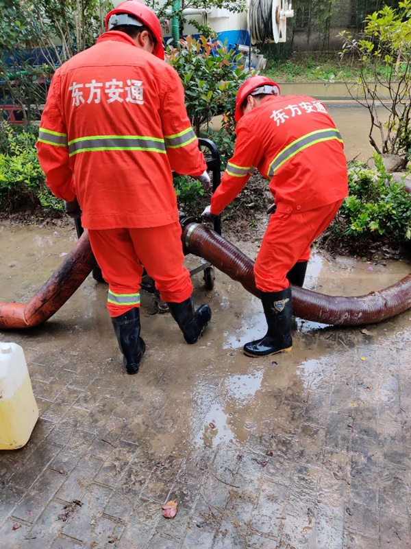 為切實保障經開區重大項目安全有序施工,市民出行便利,6月28日夜間,東方安通公司組織5輛工程車、15名員工在暴雨中對區內185公里市政道路、20余公里中隔帶護欄、165個路口信號燈進行巡查,排查道路積水情況進行梳理匯總。6月29日凌晨2點鐘,接到區內重大項目SK-I的防汛任務后,東方安通團隊組織應急隊伍和搶排設備緊急趕往現場,協助項目工地場地做好排水安全工作。