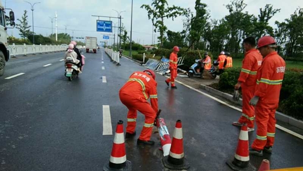 為做好強降雨天氣防范應對工作,東方園林公司早謀劃、早實施,成立防汛小組,下分4個大隊,每個隊伍30—40人,明確領班領導,統一協調指揮,嚴格落實防汛抗臺責任制,實行“安全第一、以防為主、防抗結合”的原則,及時啟動防汛預案,將各項措施落實到位;確保設備能在汛期順利、安全、有效的運行,對防汛的應急燈、雨衣、雨鞋、警戒繩等工具進行清點整理備齊;制定24小時值班制度,發現問題及時上報,并組織好汛期搶險人員,積極應對突發狀況,做到汛期隨時待命,做到人員、工具、車輛三到位,使防汛工作做到有備無患;對公園綠地內的相關廣告牌、休閑設施、廊亭等進行全面排查,發現問題及時排除安全隱患;加大行道樹和危樹的巡查,對冠幅較大的植株,進行適當的修剪、疏枝,防止強降雨過程對枝葉的沉壓,從而造成斷枝現象。