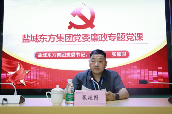 根據2020年“510”警示教育活動安排,7月10日,鹽城東方集團黨委書記、董事長張振國同志圍繞“認清責任、落實行動,自覺扛起全面從嚴治黨的使命擔當”主題,給集團全體黨員上了一堂專題廉政黨課。