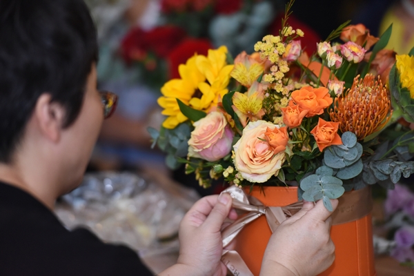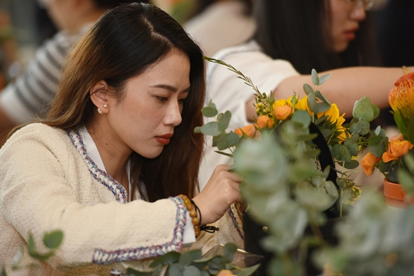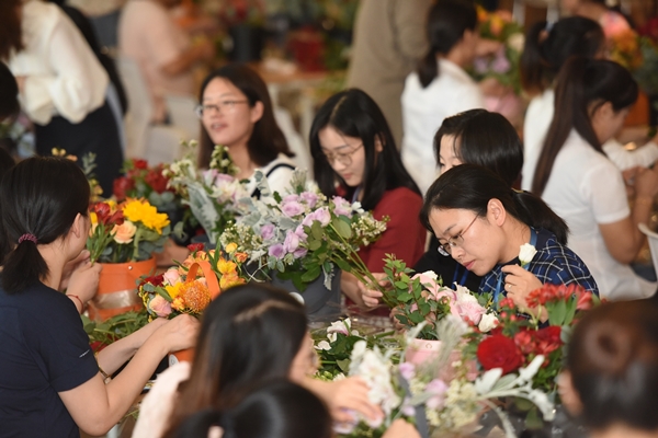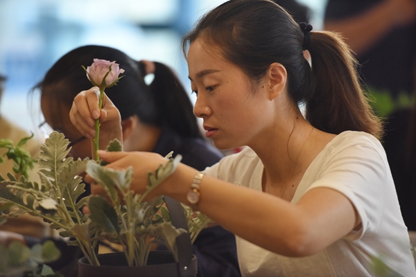 一把剪刀,一塊花泥,一個花籃,一束搭配好的鮮花。在一片芬芳的花香中,插花藝術創作正式拉開帷幕。