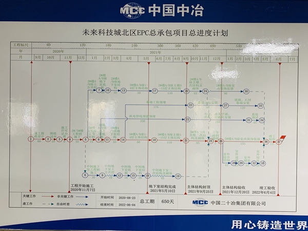 10月份樁機(jī)進(jìn)場組裝、10月底完成施工報審、11月5日取得施工許可證、11月6日樁基工程正式施工……未來科技城北區(qū)項目始終處于緊鑼密鼓、一著不讓的高效率施工節(jié)奏,這歸功于建設(shè)方和總承包單位高瞻遠(yuǎn)矚、提前謀劃,在工程尚未全面啟動前就科學(xué)制定了《未來科技城北區(qū)EPC總承包項目總進(jìn)度計劃表》,明確總工期為650天,并將項目建設(shè)目標(biāo)分解到季、進(jìn)度安排到月、措施細(xì)化到周到天;隨著工程建設(shè)不斷深入,還將針對影響施工進(jìn)度的痛點和難點集中研討,拿出優(yōu)化方案并適時調(diào)整施工方案和進(jìn)度計劃。