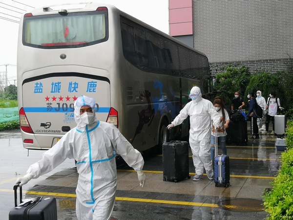 憑著共產黨員的責任和擔當,蔡靜和50多名同事連續奮戰兩天一夜,在最短時間內準備好585間隔離公寓,并按防控要求布置醫學隔離區,保證了及時啟用;隔離區啟用后,接待了大量外地來鹽人員,韓國社區隔離點全天候為醫護和隔離人員提供安保值班、保潔消毒、餐飲物資、工程維保等服務,確保負責區域安全無虞。