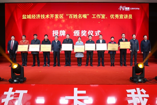 現(xiàn)場對區(qū)級“百姓名嘴”工作室進行命名授牌,對全區(qū)“點贊中國之治”理論微故事宣講比賽優(yōu)秀宣講員進行表彰。