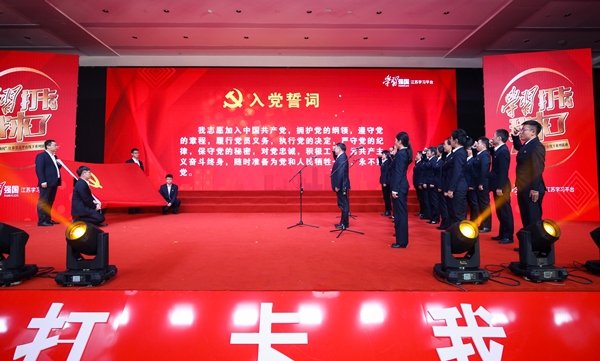 學(xué)習(xí)永無止境,時刻不忘初心。入黨誓詞,是黨員對黨和人民作出的莊嚴(yán)承諾。一代又一代中國共產(chǎn)黨人,面對鮮紅黨旗,右手握拳,一字一句許下錚錚誓言。現(xiàn)場,東方集團黨委書記、董事長張振國帶領(lǐng)黨員們重溫了入黨誓詞。