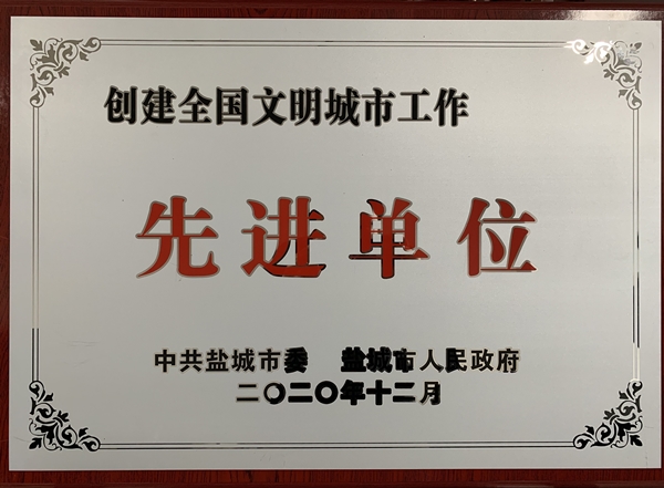 2020年11月20日,在全國精神文明建設表彰大會上,鹽城市以三年綜合得分全國第二的成績榮膺第六屆“全國文明城市”稱號。日前,鹽城市委、市政府對創建全國文明城市工作中成績突出的先進集體予以表彰。鹽城東方集團喜獲“鹽城市創建全國文明城市工作先進集體”榮譽稱號。孫龍、袁園、沈潔、駱峰4位同志獲得個人表彰。