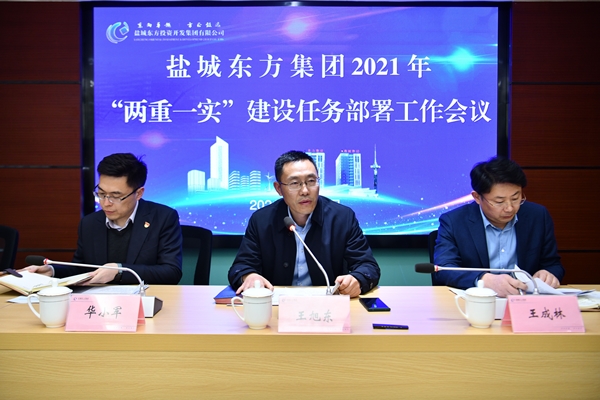 2月20日,鹽城東方集團在集團1012會議室召開2021年“兩重一實”建設任務部署工作會議。集團黨委副書記、副董事長、總經理王旭東出席會議,并對工程條線全年重點任務進行細化部署;集團黨委委員、副總經理王成林對工程建設,特別是招投標、審計相關工作提要求;集團黨委委員、紀委書記華小軍對工程條線廉政建設提要求。集團辦公室、督查辦負責人以及工程條線相關人員參加會議。