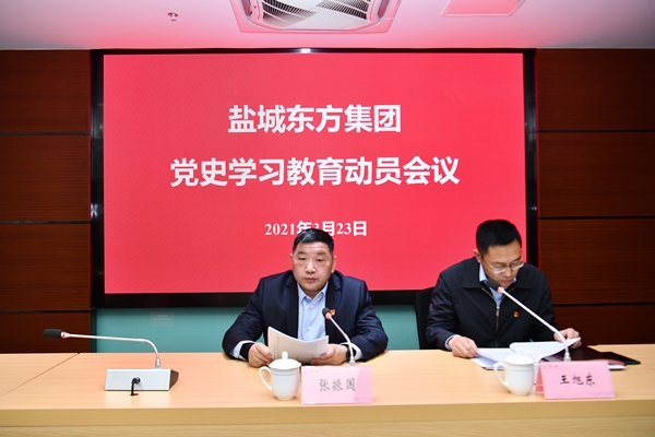 3月23日,鹽城東方集團(tuán)黨史學(xué)習(xí)教育會(huì)議召開。集團(tuán)黨委書記、董事長(zhǎng)、集團(tuán)黨委黨史學(xué)習(xí)教育領(lǐng)導(dǎo)小組組長(zhǎng)張振國(guó)作動(dòng)員講話。集團(tuán)黨委副書記、副董事長(zhǎng)、總經(jīng)理王旭東主持會(huì)議。