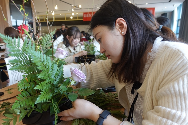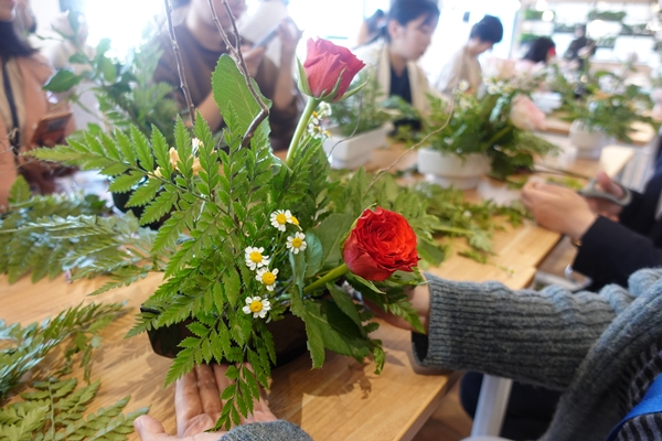 活動開始后,花藝老師為大家介紹日式插花的基礎知識,展示了一些經典日式插花作品,同時還教授了日式插花的方法和各種小技巧。日式插花講究的是“空、寂、靜”,用最適合的花材體現花、葉、器的線條之美,以簡為榮,正符合了東方集團清風正氣的文化底蘊。