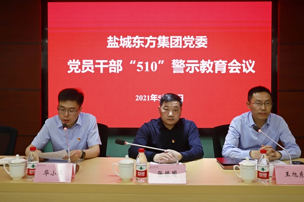 為切實改進工作作風、縱深推進全面從嚴治黨,以清明的政治生態推動集團高質量發展,5月25日下午,鹽城東方集團黨委召開“510”警示教育會議。集團黨委書記、董事長張振國部署集團2021年全面從嚴治黨工作。集團黨委副書記、副董事長、總經理王旭東主持會議。集團在鹽班子成員,集團各部門中層以上、各直屬子公司經營層人員,各工程項目負責人70多人參加會議。