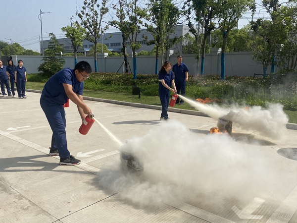 演習活動中,水務公司安全工程師王權權為員工詳細講解安全自救常識,并現場模擬失火場景,指導員工如何安全疏散并正確使用滅火裝置。在確保人員安全的前提下,由水務公司總經理沈效偉發布演習信號,全員進行撲救火災實操演練,參訓人員輪流拿起滅火器,按照“搖、拔、噴”的操作要領,只見一瞬間,油桶里燃起的熊熊大火就被撲滅,冒起一股濃濃的白煙。