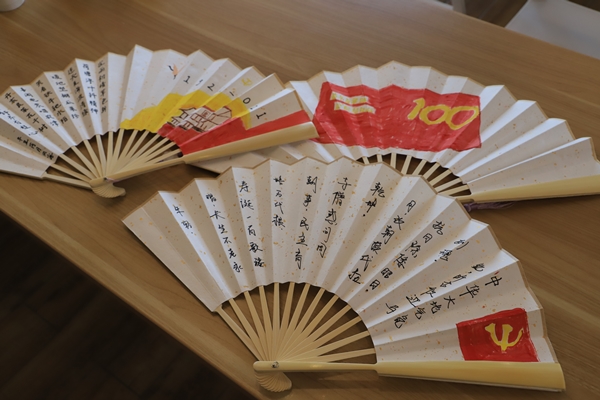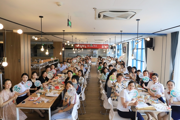 扇面繪制完成后,員工們手持團(tuán)扇合影留念,一張張笑臉與團(tuán)扇作品輝映,留下了美好的影像。