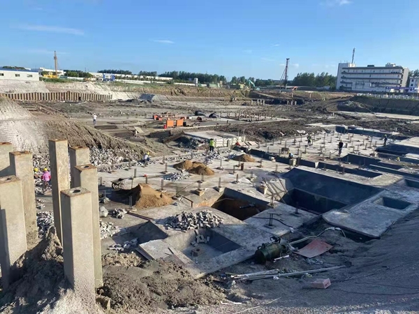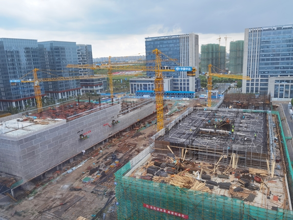 中韓(鹽城)產(chǎn)業(yè)園未來(lái)科技城北區(qū)項(xiàng)目入口滾動(dòng)播放條屏疫情防控標(biāo)語(yǔ),張貼防疫宣傳標(biāo)語(yǔ),持續(xù)加強(qiáng)防疫指導(dǎo)宣傳教育,全面提高參建人員的防疫意識(shí)。施工現(xiàn)場(chǎng),模板腳手架搭設(shè)、鋼筋制作綁扎、混凝土澆筑、防水施工有序進(jìn)行中,集中有限力量突擊主體結(jié)構(gòu),并合理穿插室內(nèi)工作。該項(xiàng)目科學(xué)組織,綜合劃分三個(gè)施工段,分解分布工程目標(biāo)、編制具體控制節(jié)點(diǎn)計(jì)劃,按目標(biāo)節(jié)點(diǎn)分步實(shí)施。該項(xiàng)目為高端配套區(qū)的核心載體。總建筑面積107157.27平方米。該工程含地下1層,地上15層,包含四棟主樓及裙房。截至目前,樁基工程,基坑支護(hù)、土方開(kāi)挖工程,主樓地下室主體結(jié)構(gòu)均已完成,地上主體結(jié)構(gòu)完成30%。