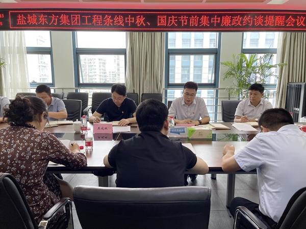 9月13日,鹽城東方集團(tuán)工程條線在1115會(huì)議室組織召開(kāi)中秋、國(guó)慶節(jié)前廉政約談提醒會(huì)議。集團(tuán)黨委委員、副總經(jīng)理王成林主持會(huì)議并對(duì)工程條線人員進(jìn)行節(jié)前集中廉政約談提醒。集團(tuán)黨委委員、紀(jì)委書(shū)記華小軍就工程條線人員廉潔過(guò)節(jié)提具體要求。集團(tuán)工程部、招標(biāo)部、審計(jì)部、重點(diǎn)工程負(fù)責(zé)人及有關(guān)人員等20余人參加會(huì)議。