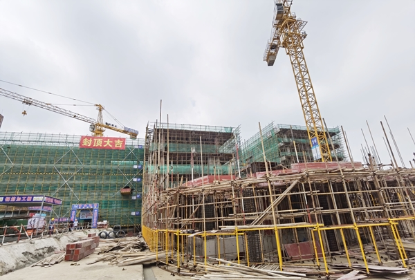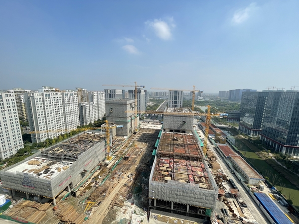 在未來科技城北區項目現場,345名施工人員正加快主體結構和砌體結構施工,各專業合理穿插施工,組織二次結構、幕墻專業、機電安裝專業提前進場,加快施工節奏,全面掀起假日大干高潮,力爭10月底完成2#樓B座、5#樓B座結構封頂目標。因能耗管控,混凝土、鋼筋接連斷供、漲價,該項目部積極協調混凝土供貨單位,協調采購價格,盡全力保證工程正常施工。