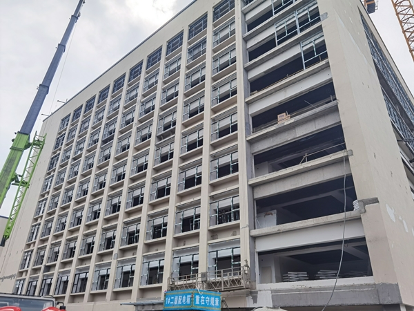 尚德商務樓假日期間施工節奏沒有絲毫放緩,150名參建人員選擇犧牲假期的休息機會,加班加點進行1#、2#區域二次結構施工,3#區域二層主體結構施工。根據各工程實際分段分類施工,交叉作業,對每道工序進行全程質量監督,確保工程質量。爭取10月底完成主體結構封頂。
